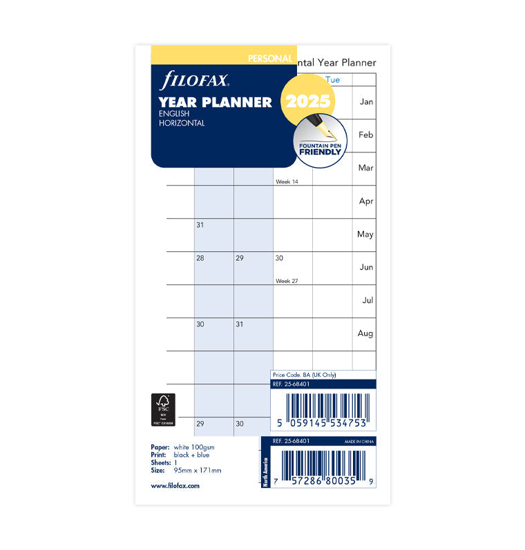 Horizontal Year Planner Refill Personal 2025 | Filofax โ Filofax UK